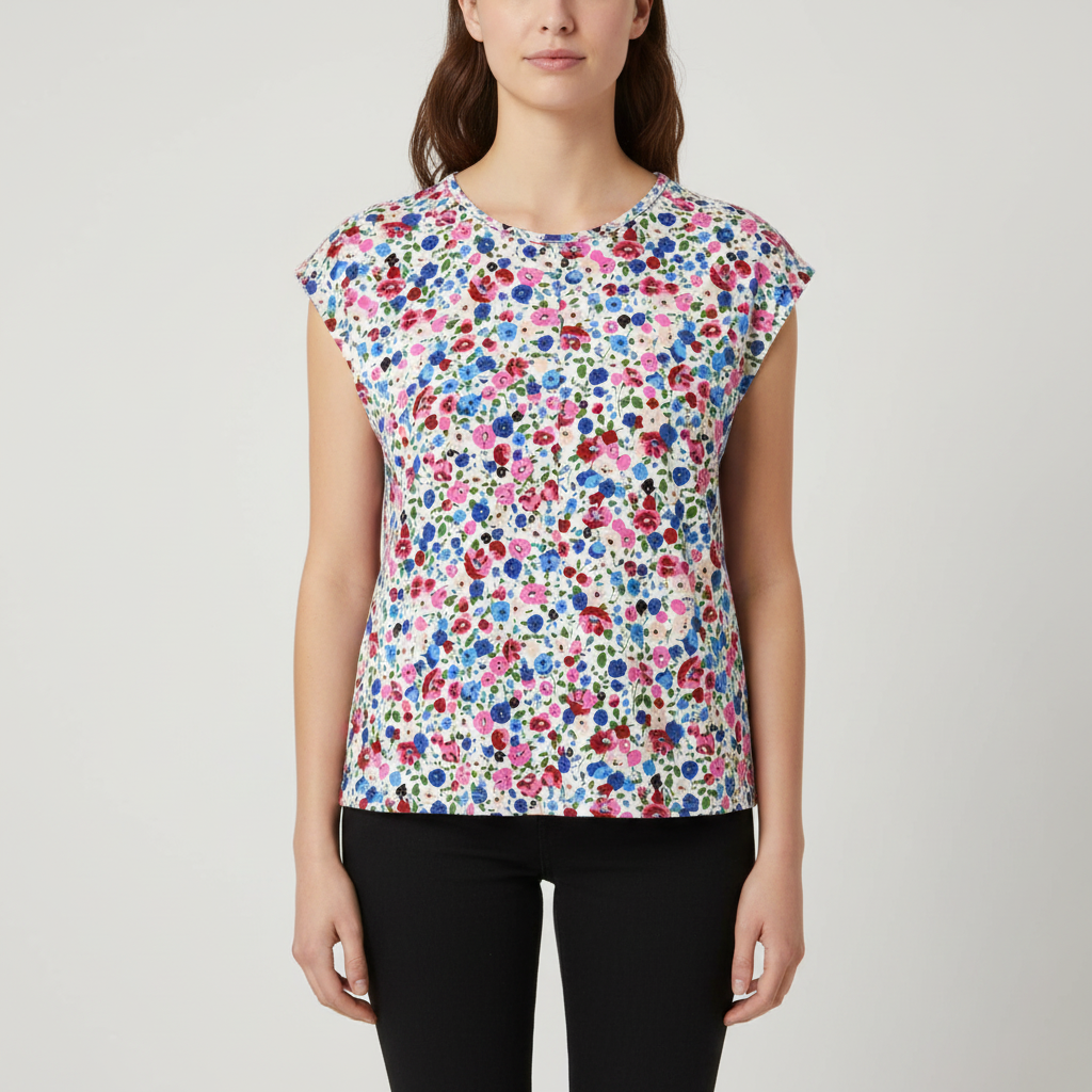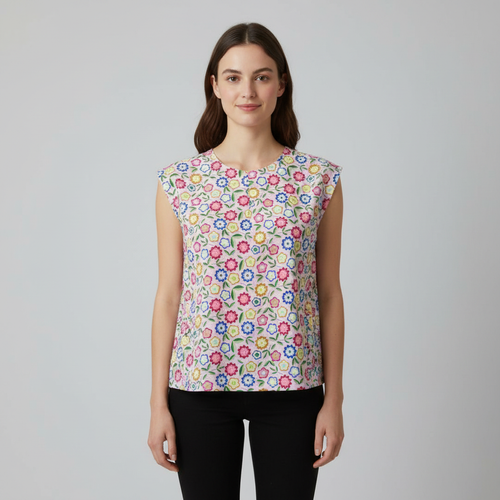 لباس زنانه آستین سرخود ( استین تا سر شانه ) یقه گرد فریسایز – خنک و نخی