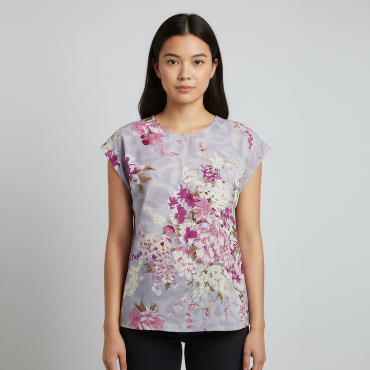 لباس زنانه آستین سرخود ( استین تا سر شانه ) یقه گرد فریسایز – خنک و نخی