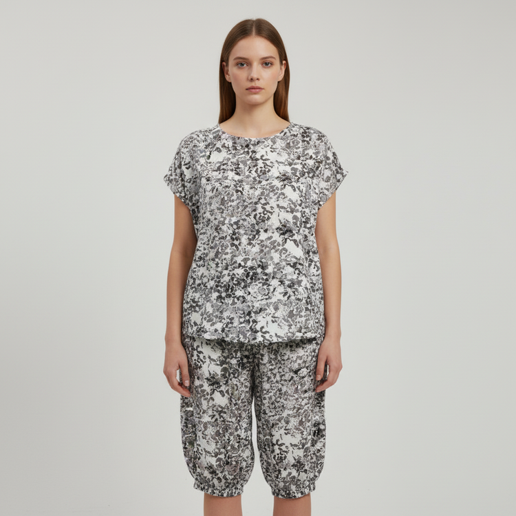 ست لباس زنانه آستین سرخود خنک با شلوارک – فریسایز و نخی