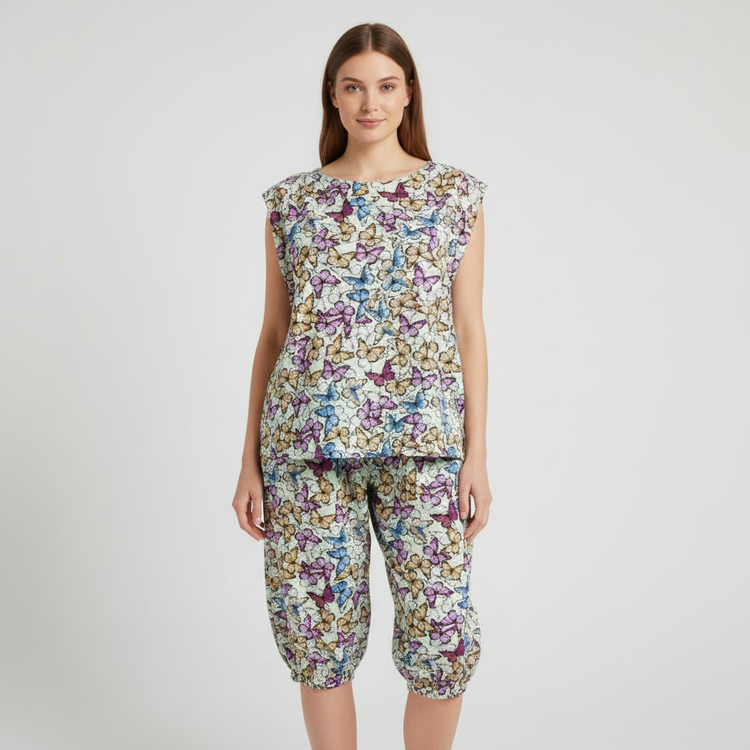 ست لباس زنانه آستین سرخود خنک با شلوارک – فریسایز و نخی